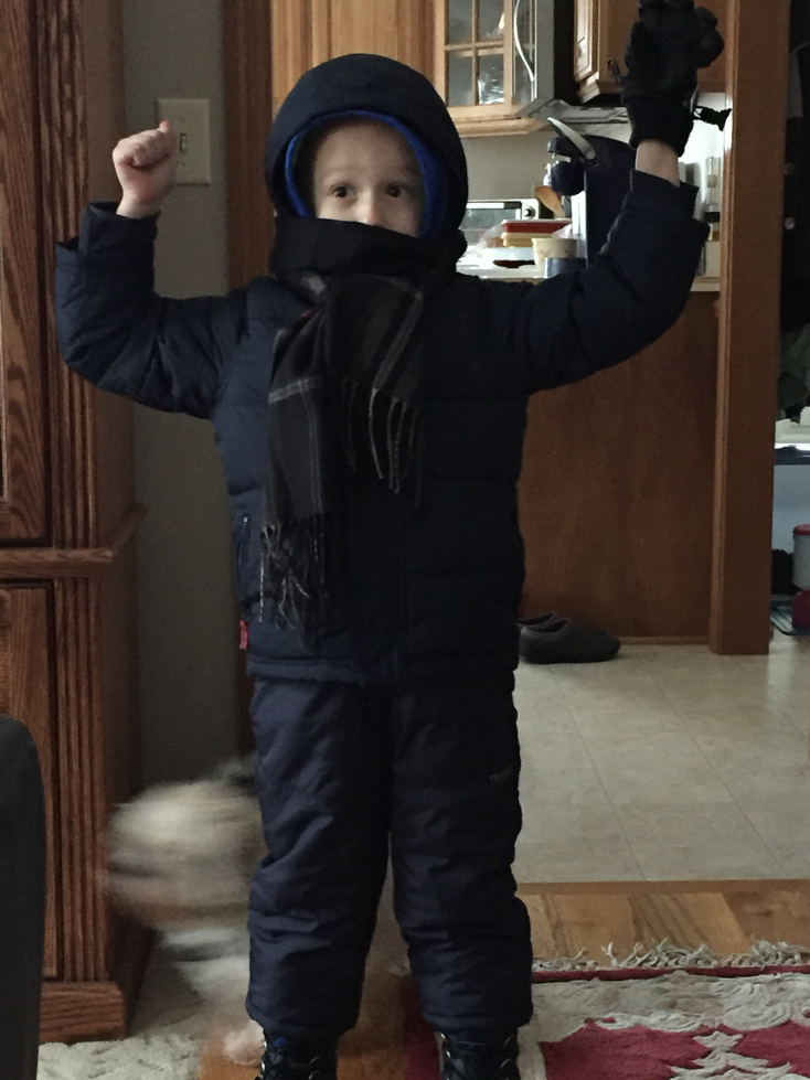 On Thursday, we braved the cold weather and took Max sledding since it was snowing all day. Max was super excited to go sledding even though it was only 5 degrees out that day. He was all bundled up and grandpa J and grandma V took him to the park. Andy and I showed up just long enough to get a few pictures and head back to the house. We were not dressed appropriately for sledding, but Max and his grandparents were all bundled up.