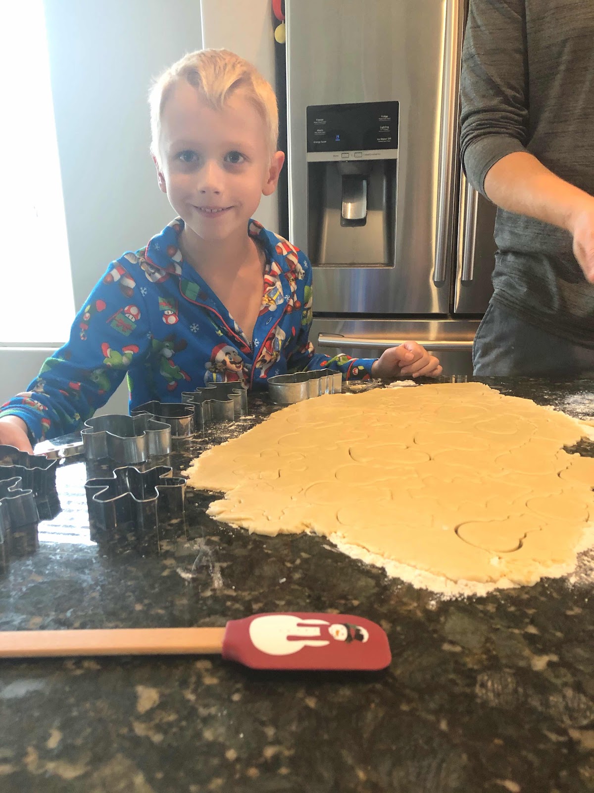I was recently at Sprout's and came across dye-free food coloring and dye-free sprinkles. I was pretty excited so I bought them because now we can make cut-out cookies that Max can eat. He was also pretty excited about it when I got home. We spent Sunday afternoon baking and decorating cookies. This was also my first time making homemade buttercream frosting. I am not a baker and never have been because I am not a sweets person, but I wanted to give Max color options for frosting that could be piped on because my Ziploc baggies needed to be put to good use. Because the dye is colored with food ingredients versus chemicals the colors were dull, but that's ok nobody cared. It was a lot of fun to make and Max enjoyed eating a lot of them.